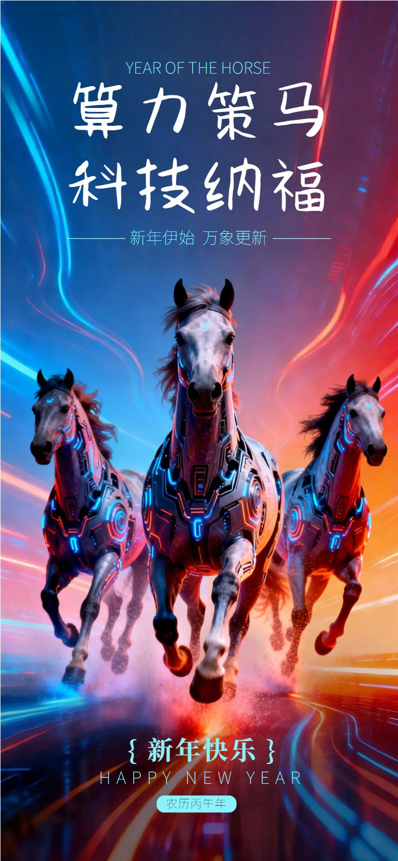 科技风马年祝福宣传海报