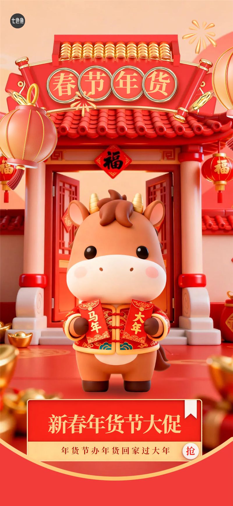 位置:首页>社交>手机海报>3D立体马年年货节全屏海报