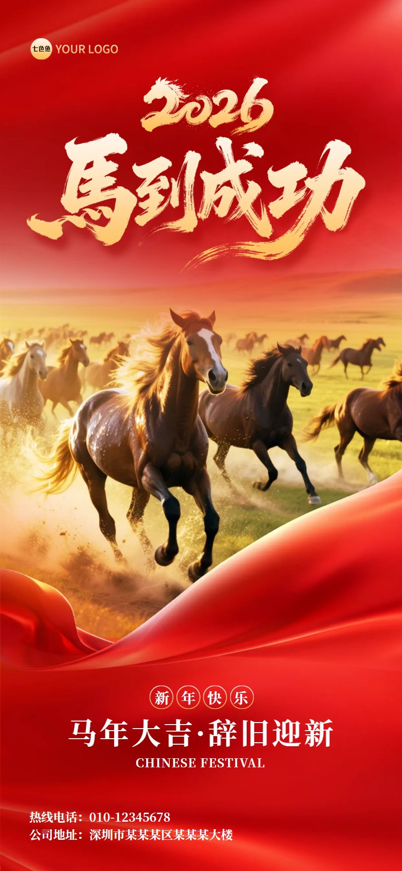 2026马年祝福马到成功摄影风海报是设计师 笨笨的作品,模板尺寸为720*1280px,属于?社交>?手机海报模板 ,模板图片素材均支持免费下载,在线就近下单印刷。操作简单易懂,会打字就会做设计,七色鱼界面友好上手快,可适用于多种场景。七色鱼拥有海量模板素材,30万+模板免费用,行业覆盖丰富,全部模板只需拖拉拽,轻松改。满足中小型企业、创业公司、自媒体、学生和个体经营者的自助平面设计需求,还可进行云端储存管理、分享协作、营销传播、在线下单印刷等。