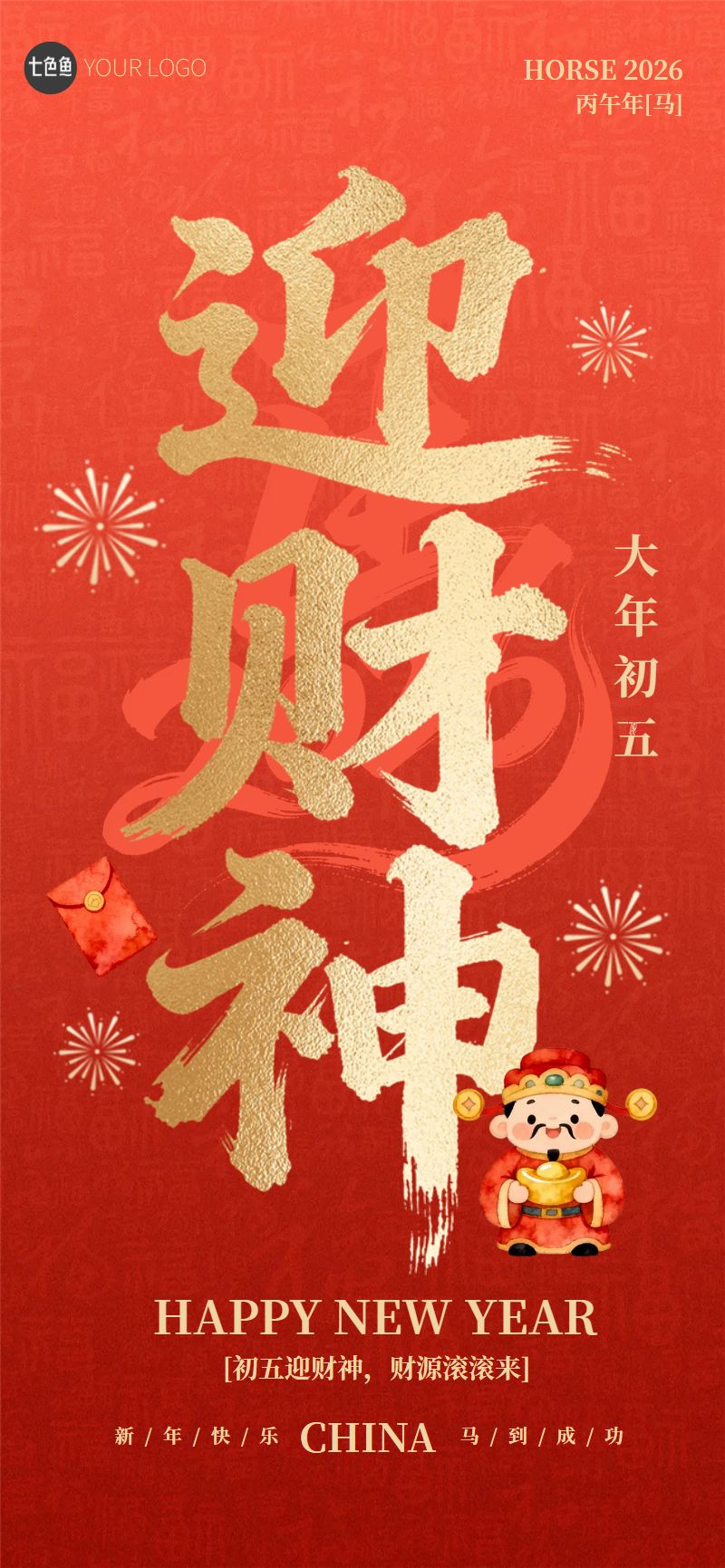 简约马年大年初五全屏海报是设计师 笨笨的作品,模板尺寸为720*1280px,属于?社交>?手机海报模板 ,模板图片素材均支持免费下载,在线就近下单印刷。操作简单易懂,会打字就会做设计,七色鱼界面友好上手快,可适用于多种场景。七色鱼拥有海量模板素材,30万+模板免费用,行业覆盖丰富,全部模板只需拖拉拽,轻松改。满足中小型企业、创业公司、自媒体、学生和个体经营者的自助平面设计需求,还可进行云端储存管理、分享协作、营销传播、在线下单印刷等。
