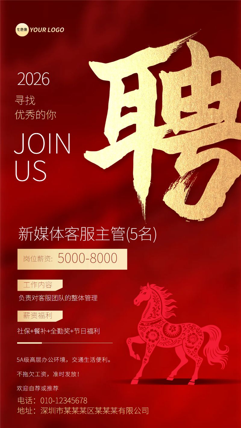 位置:首页>社交>手机海报>大气马年招聘红色手机海报
