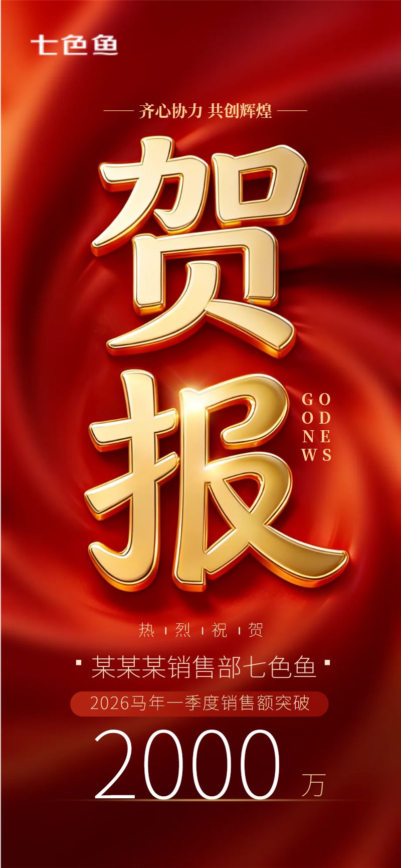 红色大气企业销售贺报全屏海报是设计师 笨笨的作品,模板尺寸为720*1280px,属于?社交>?手机海报模板 ,模板图片素材均支持免费下载,在线就近下单印刷。操作简单易懂,会打字就会做设计,七色鱼界面友好上手快,可适用于多种场景。七色鱼拥有海量模板素材,30万+模板免费用,行业覆盖丰富,全部模板只需拖拉拽,轻松改。满足中小型企业、创业公司、自媒体、学生和个体经营者的自助平面设计需求,还可进行云端储存管理、分享协作、营销传播、在线下单印刷等。
