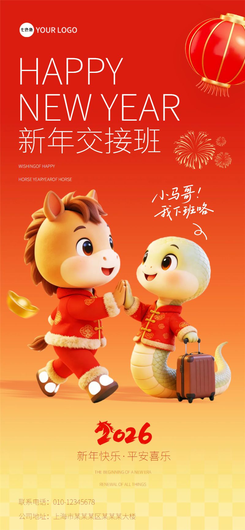 位置:首页>社交>手机海报>2026马年新年交接班创意全屏海报